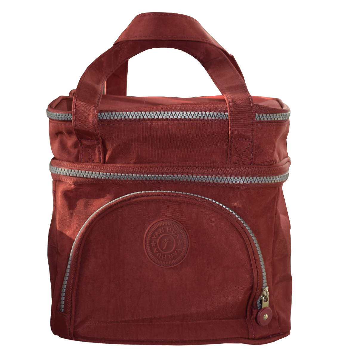 Su diseño compacto y funcional cuenta con interior térmico aislante, cierre superior reforzado con doble compartimiento y un práctico bolsillo frontal para llevar pequeños accesorios. Además, incluye asa resistente para un transporte cómodo y seguro.