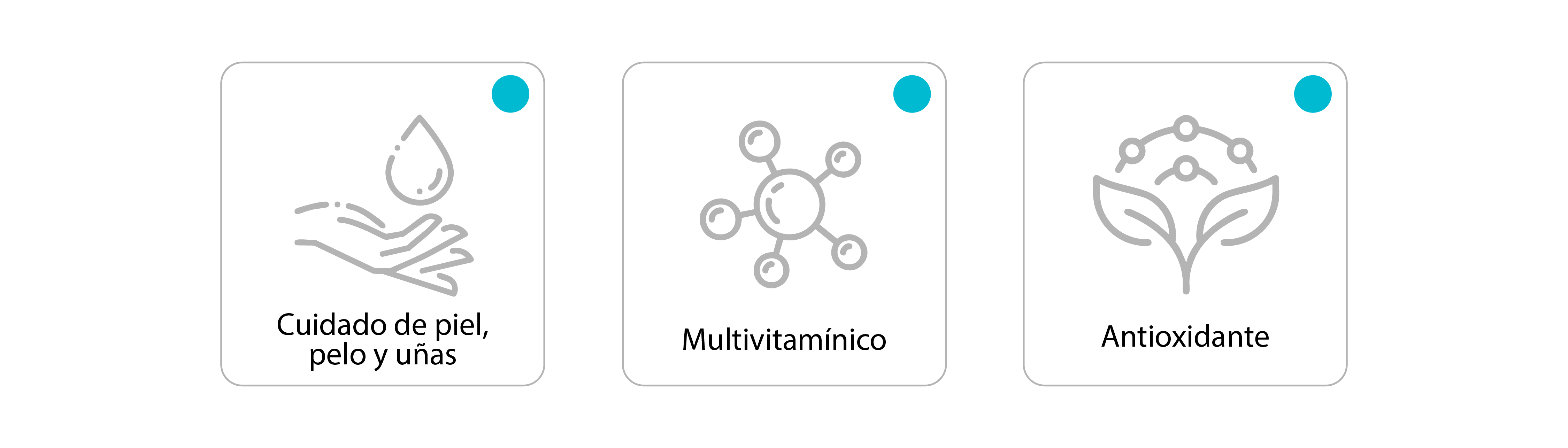 Máxima efectividad en una dosis diaria Potencia la salud de la piel, pelo y uñas Formulado con Biotina, vitaminas y nutrientes naturales